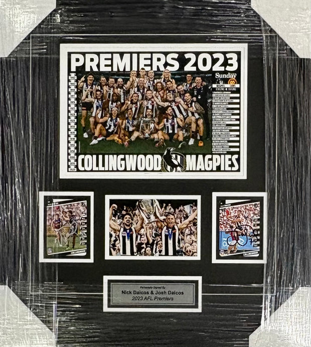 NICK & JOSH DAICOS “2023 Premiers” Signed Cards & Photo Collage Display