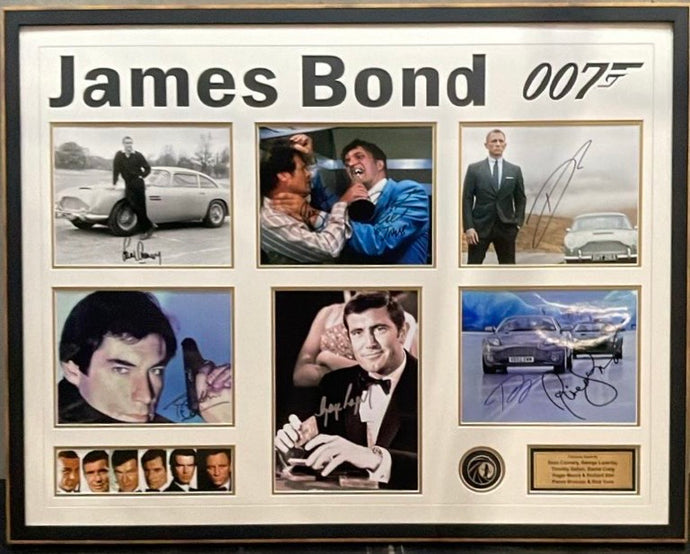 JAMES BOND - Sean Connery, Roger Moore, George Lazenby, Timothy Dalton, Pierce Brosnan & Daniel Craig Signed Display