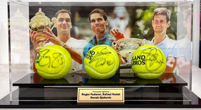 ROGER FEDERER, RAFAEL NADAL & NOVAK DJOKOVIC Signed Tennis Balls in Display Box