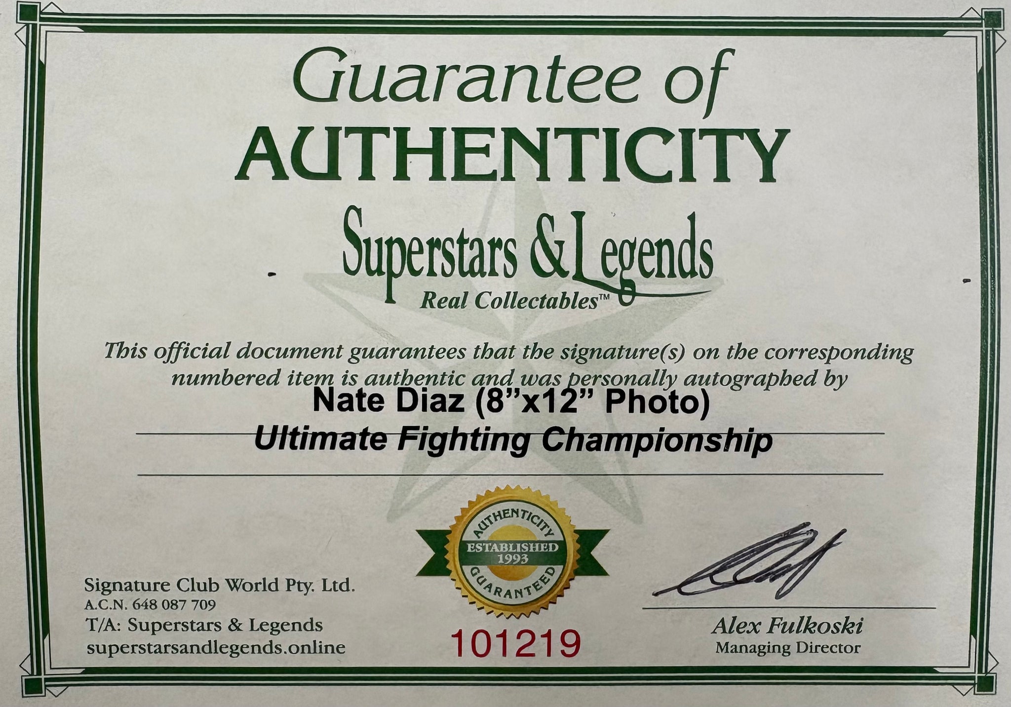 NATE DIAZ Signed 8”x12” Photo Display, Framed.