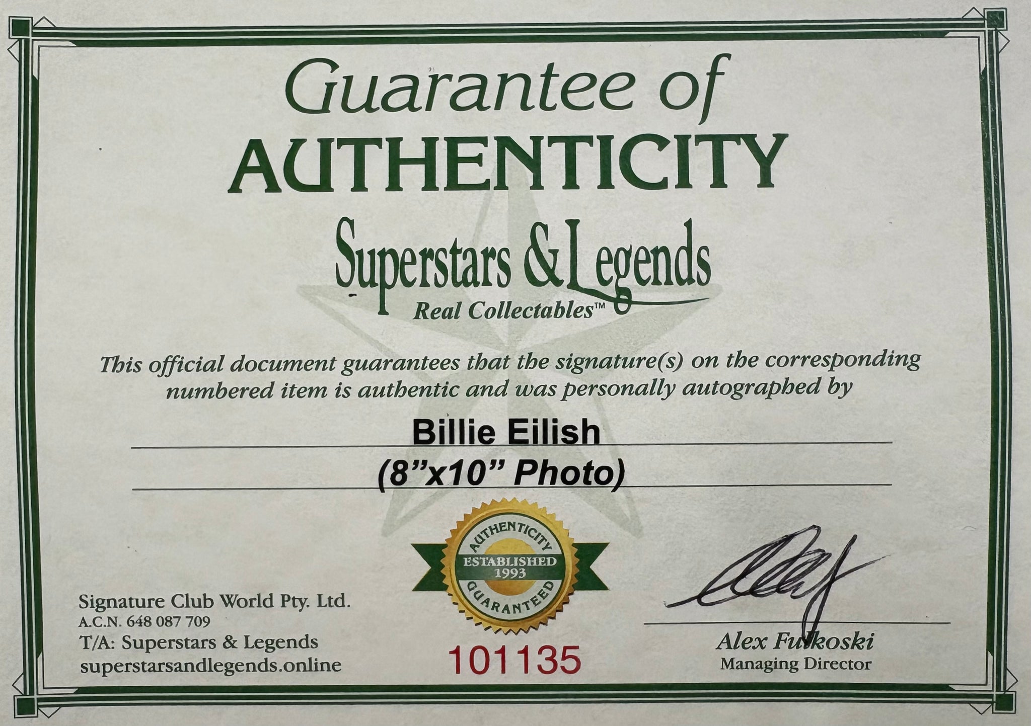 Comes with Superstars & Legends certificate of authenticity.