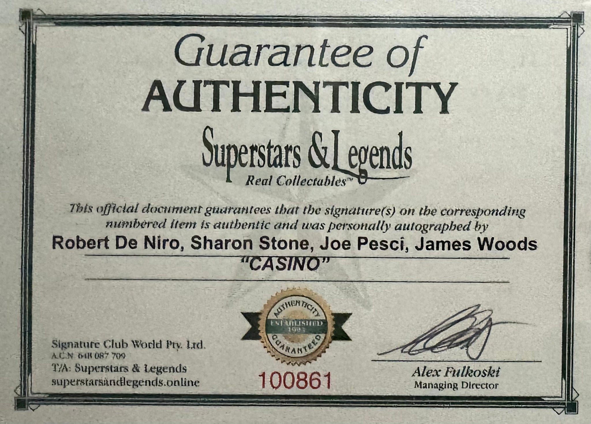Beautiful Product, Worth the Cost – The signed Sopranos display is a striking piece. Worth every cent.