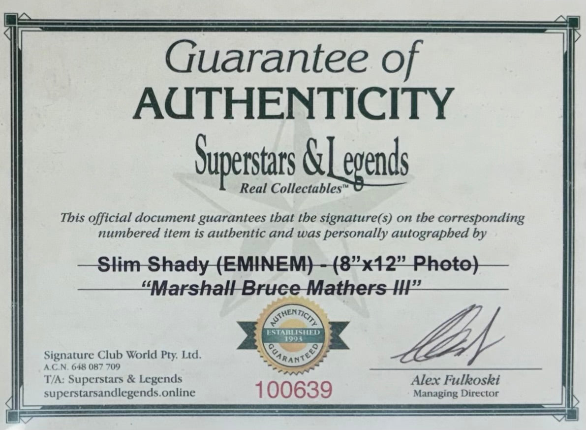 This signed Eminem display is a must-have for any fan. It arrived quickly, securely packaged, and in perfect condition.
