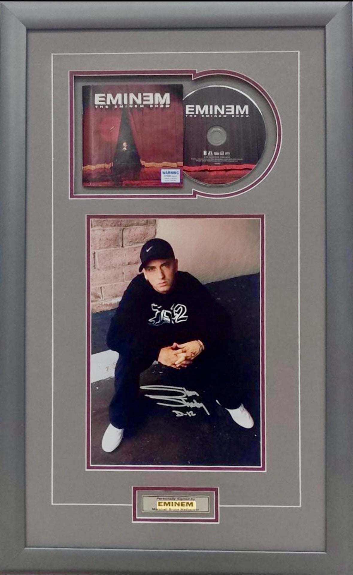 EMINEM - Slim Shady / Marshall Bruce Mathers III Signed 8”x10” Photo & “The Eminem Show” CD Collage Display, Framed.