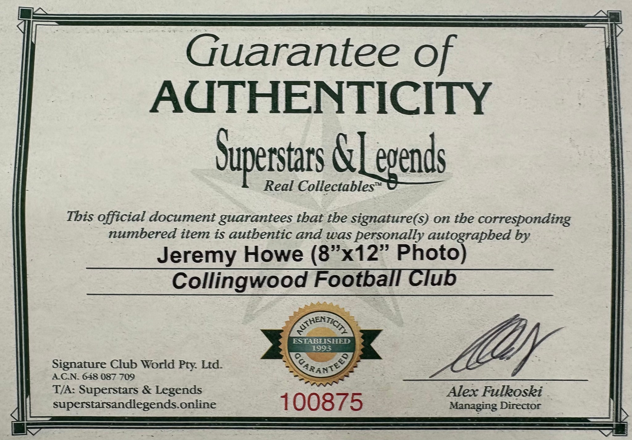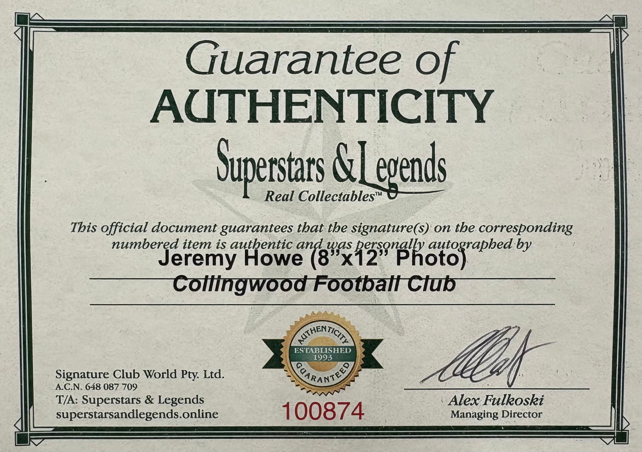 JEREMY HOWE “Collingwood Magpies” Signed 8”x12” Photo, Framed.