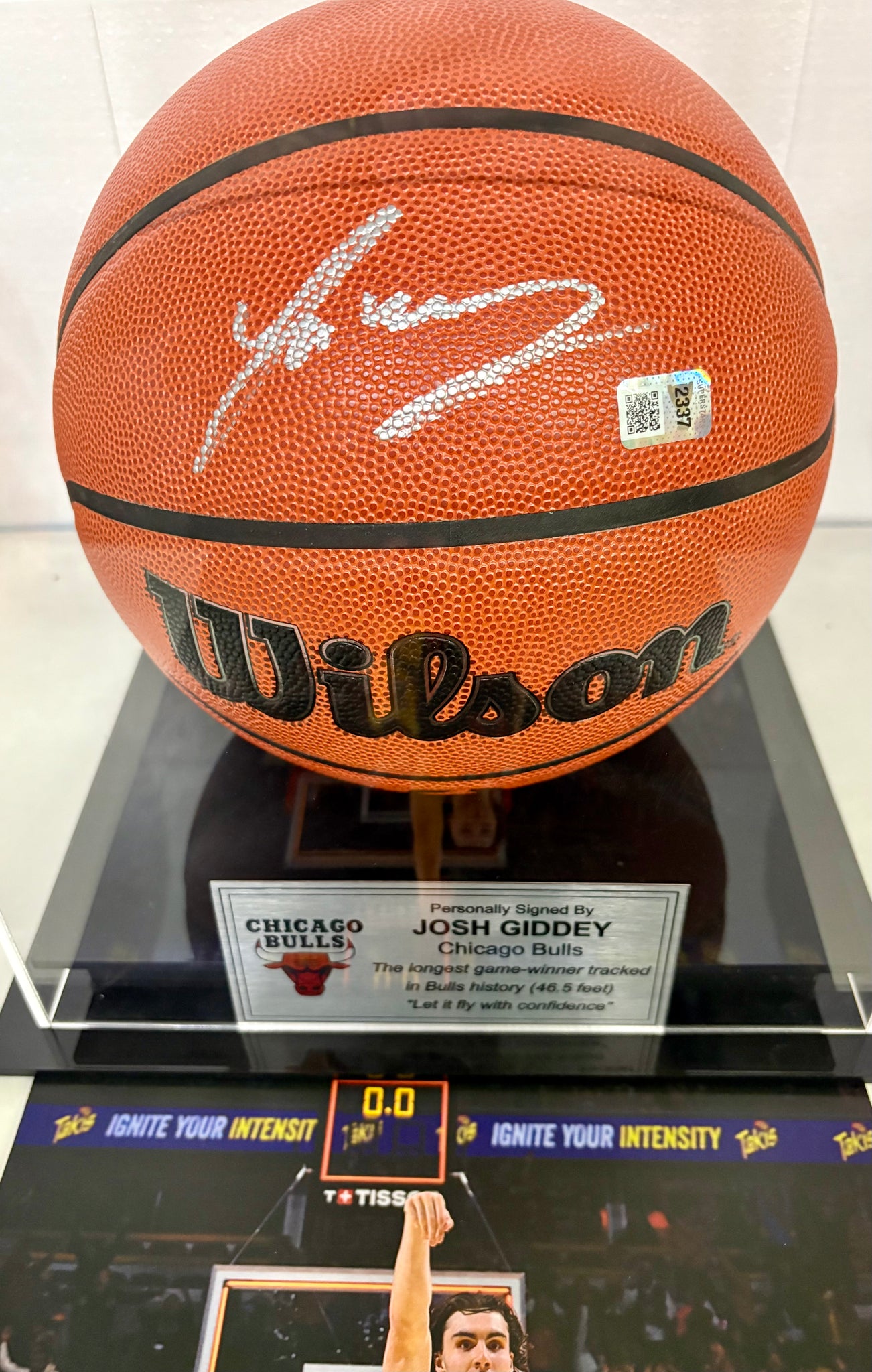 JOSH GIDDEY “Chicago Bulls” Signed Basketball, with Photo & Engraved Plaque in Acrylic Display Case.