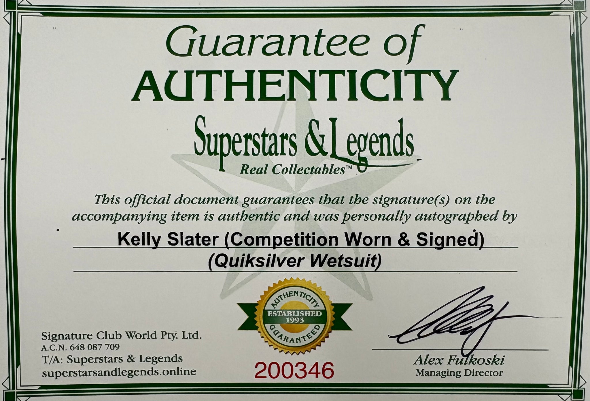 Comes with Superstars & Legends certificate of authenticity.