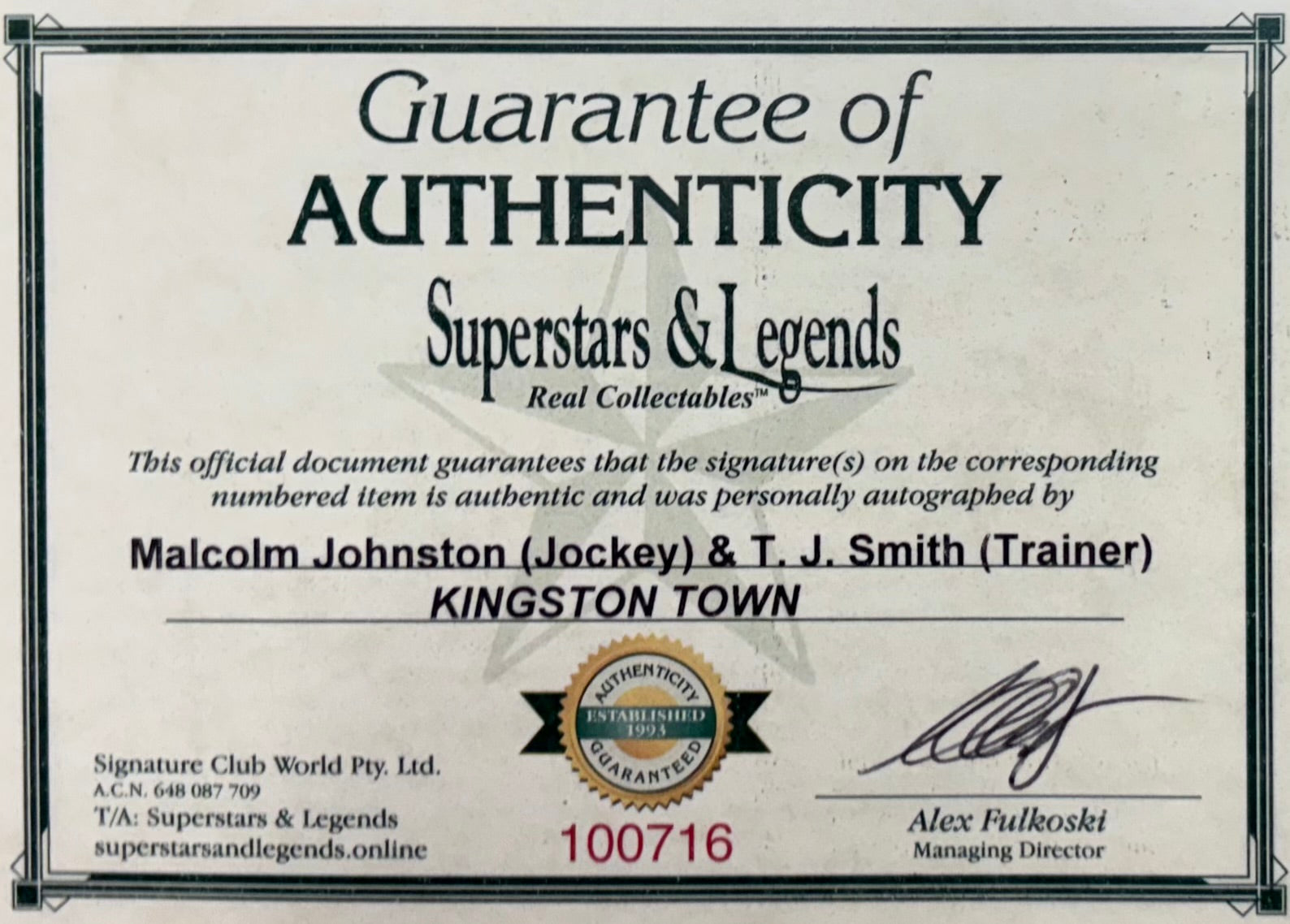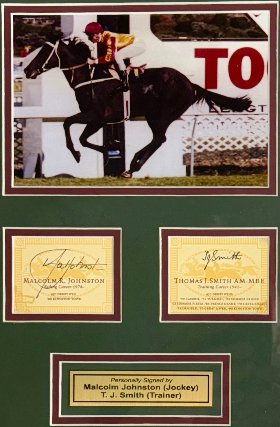 KINGSTON TOWN - Malcolm Johnston & TJ Smith (Trainer) & Signed Photo Collage Display, Framed.