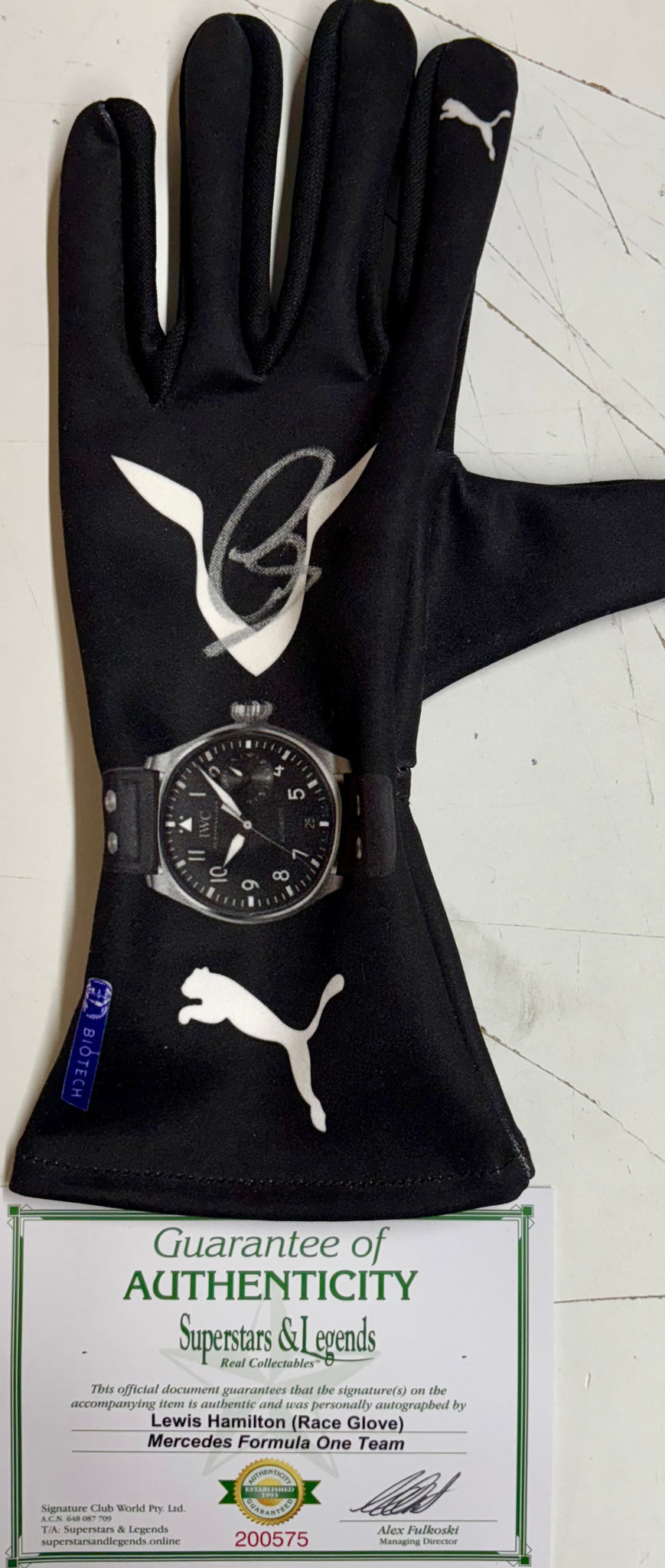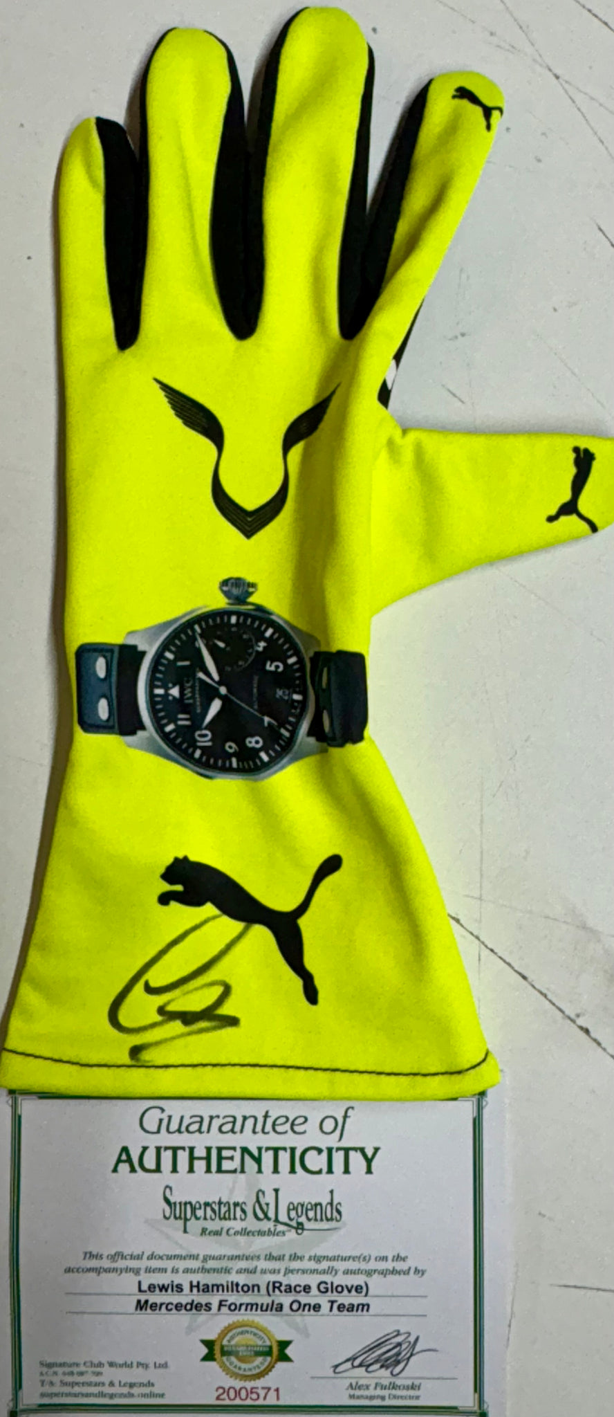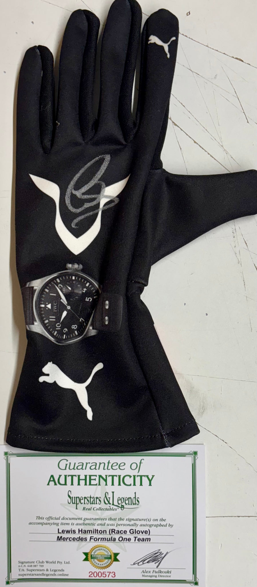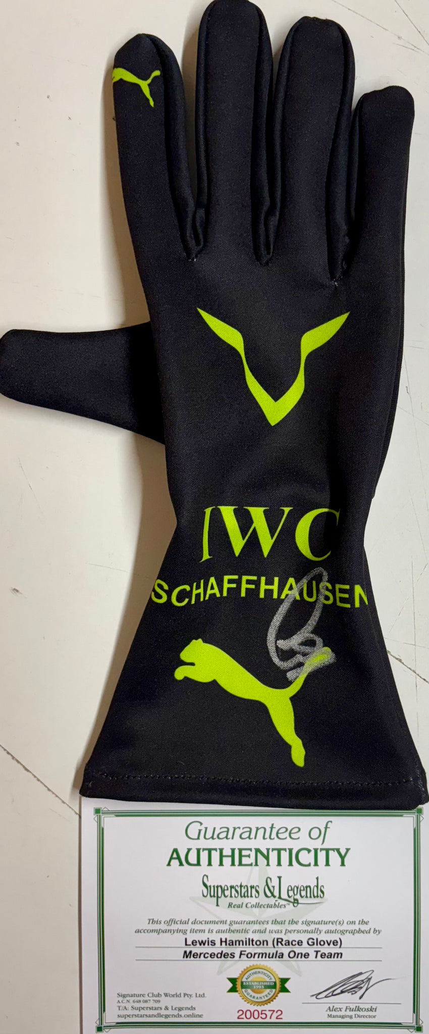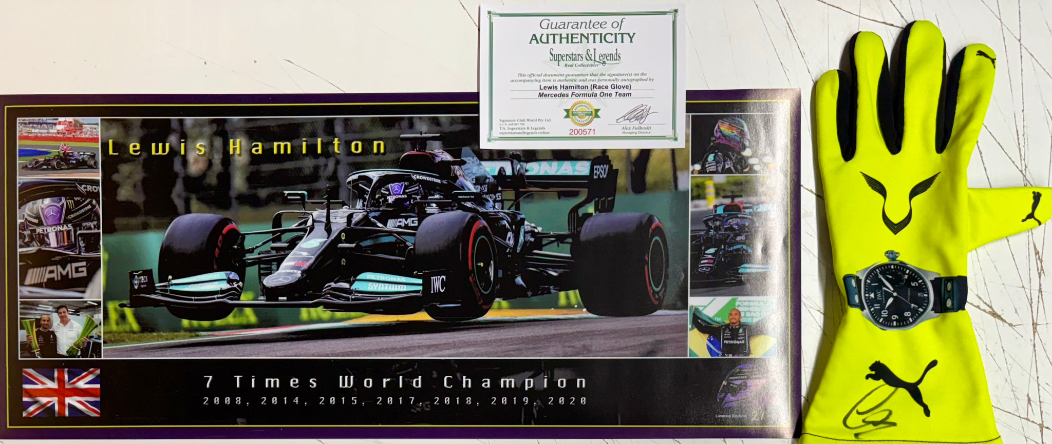 LEWIS HAMILTON “F1 Mercedes" Signed replica Race Glove & 7-Time F1 Championship Limited Edition Panoramic Print, UnFramed.