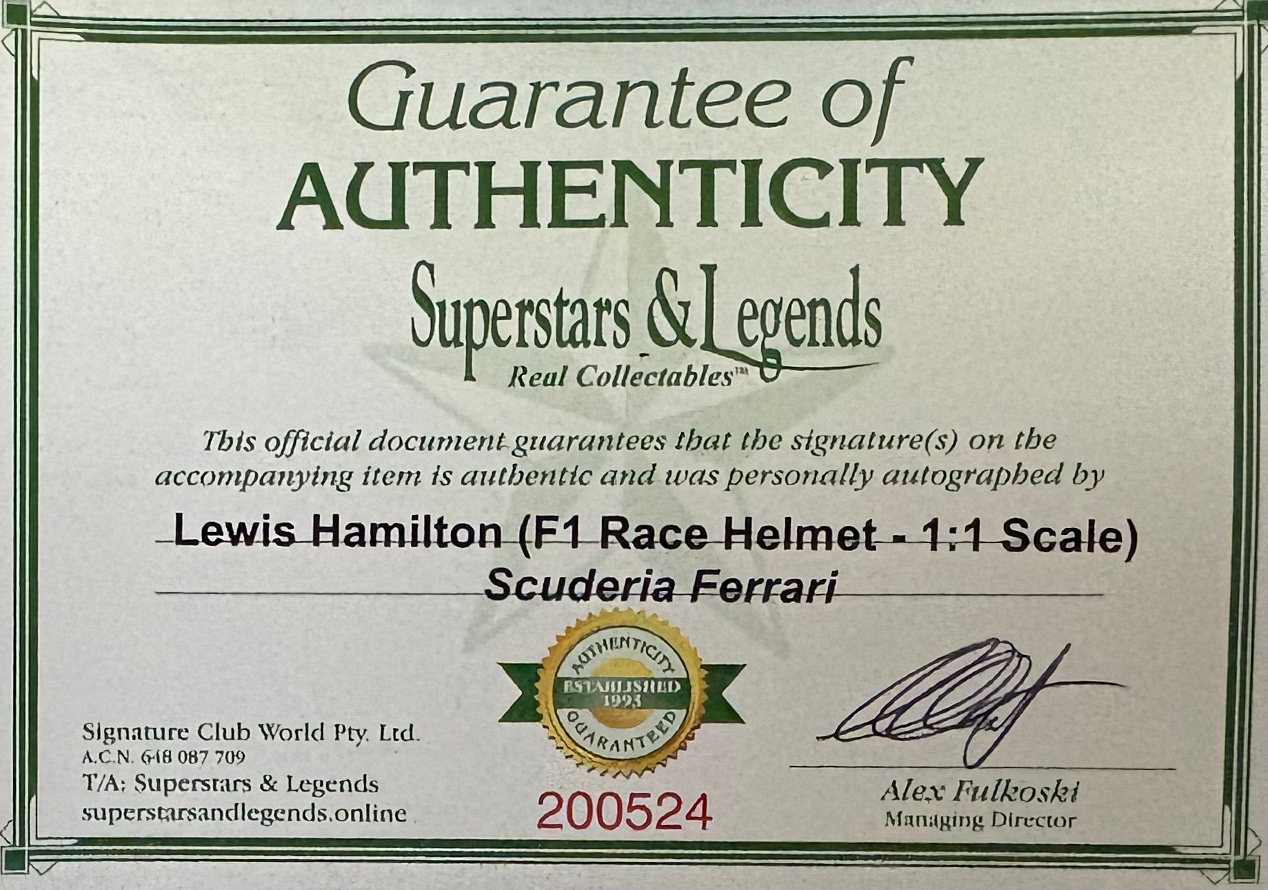 LEWIS HAMILTON “Scuderia Ferrari" Signed Full Size 1:1 Scale (Replica) F1 Race Helmet.