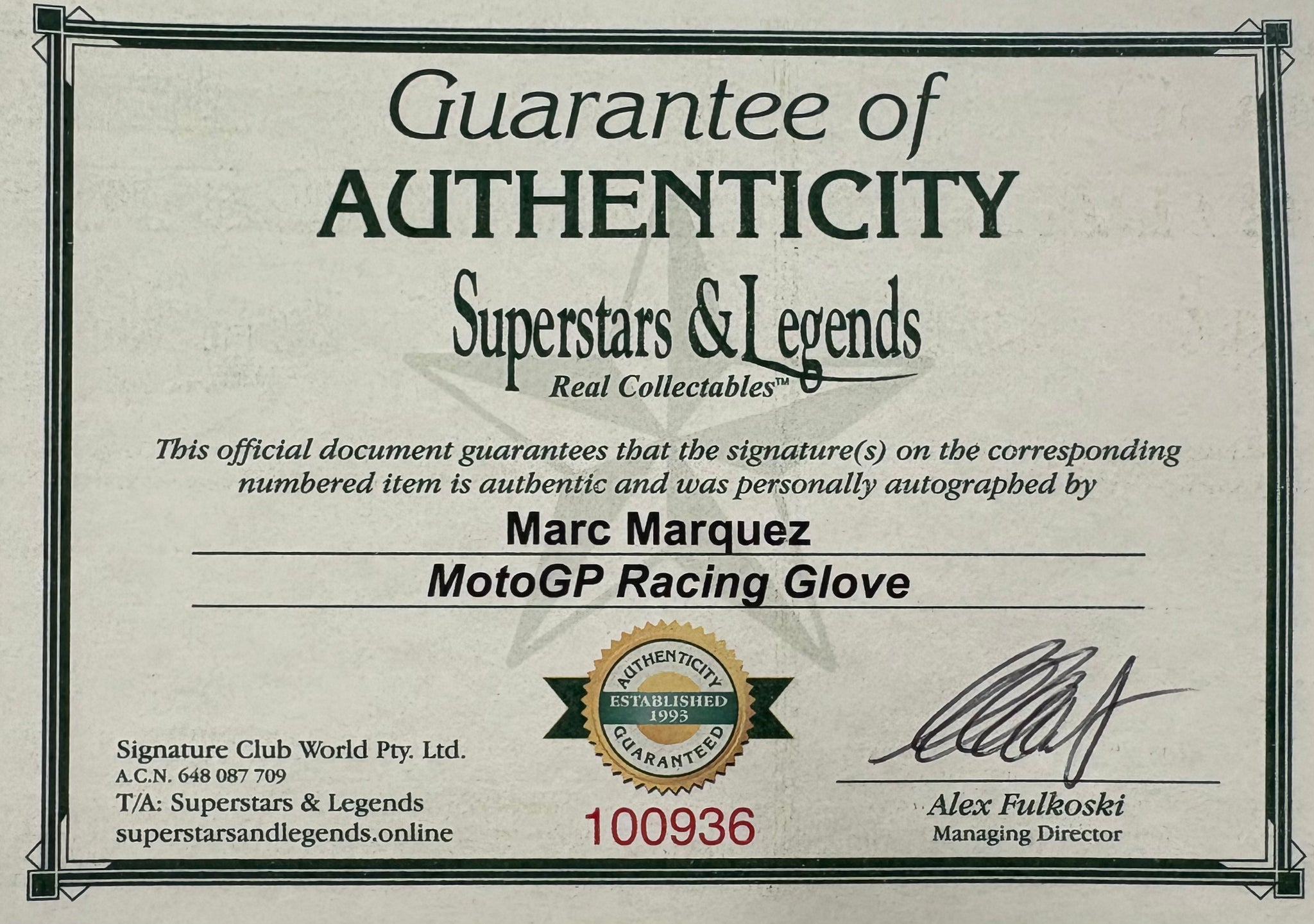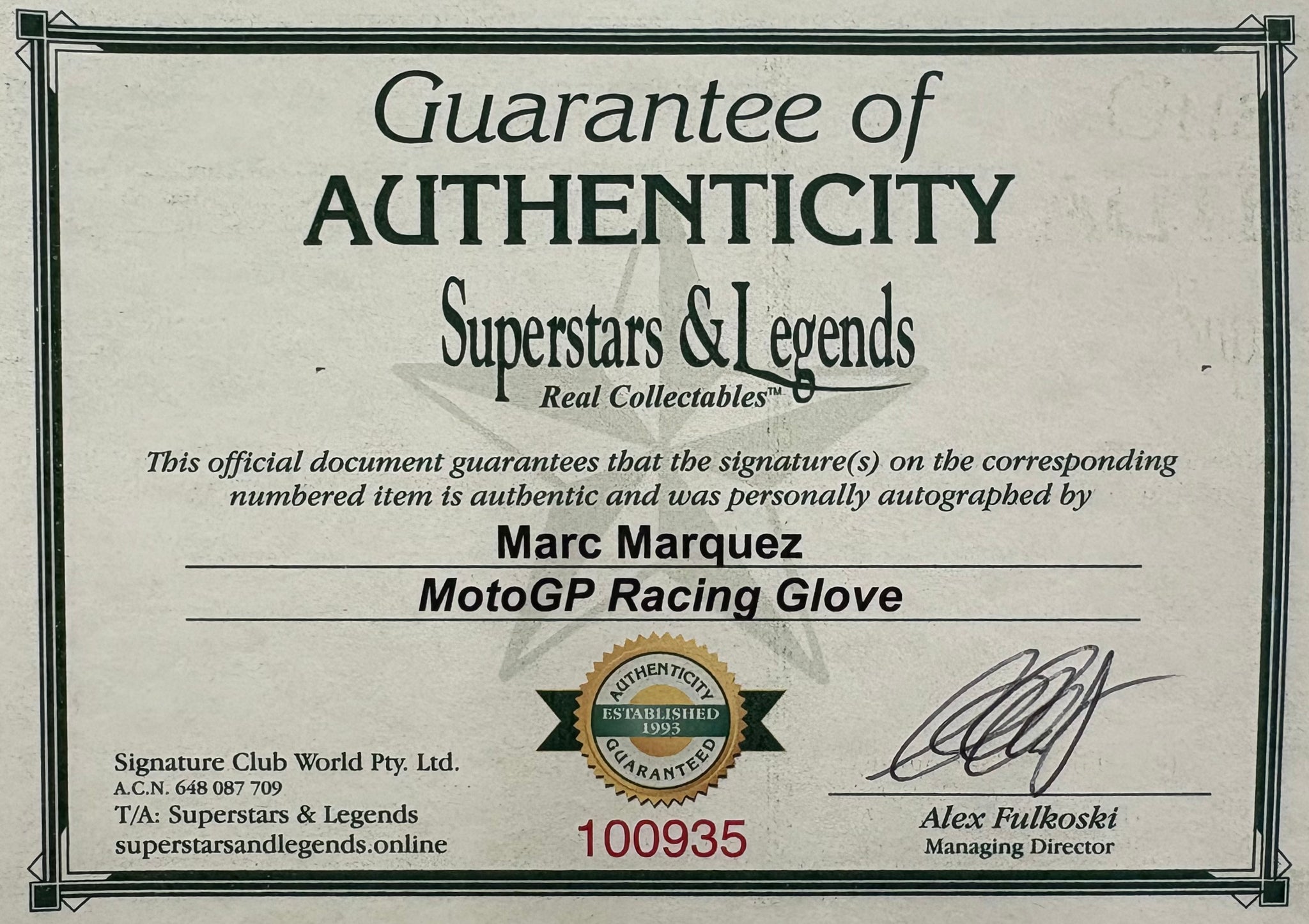 Comes with Superstars & Legends certificate of authenticity.