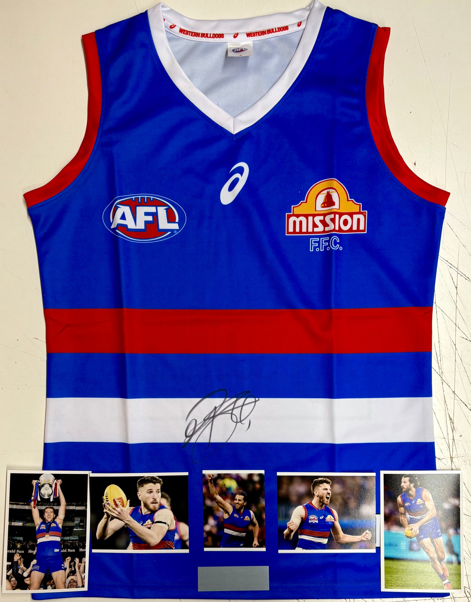 MARCUS BONTEMPELLI Signed Western Bulldogs AFL Jumper & 4”x6” Photo Collage Display, Framed.