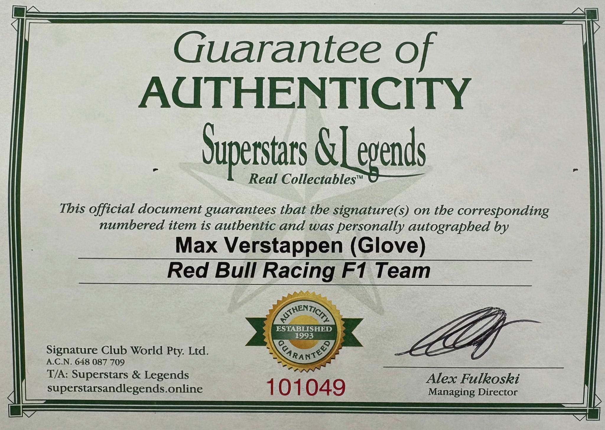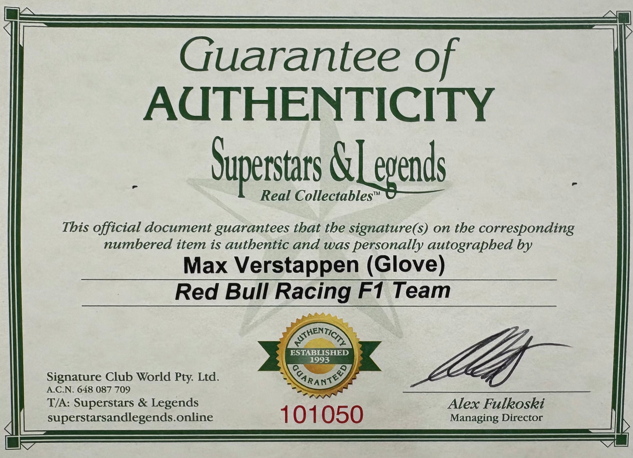 Comes with Superstars & Legends certificate of authenticity.