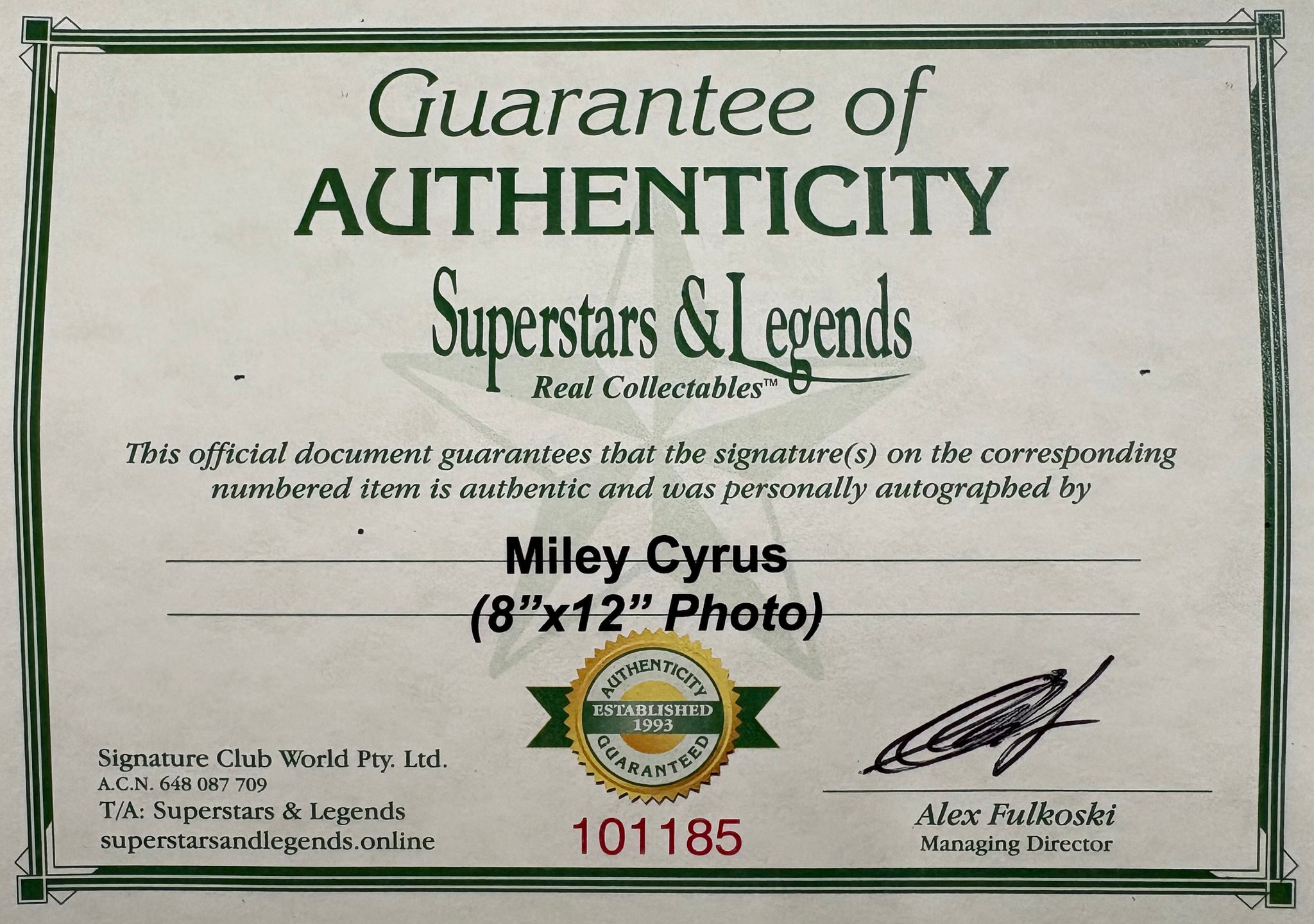 MILEY CYRUS Signed 8”x12” Photo & “Bangerz” CD Display, Framed.