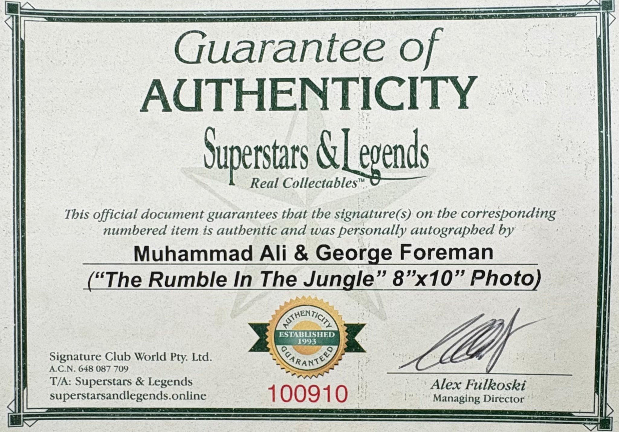Comes with Superstars & Legends certificate of authenticity.