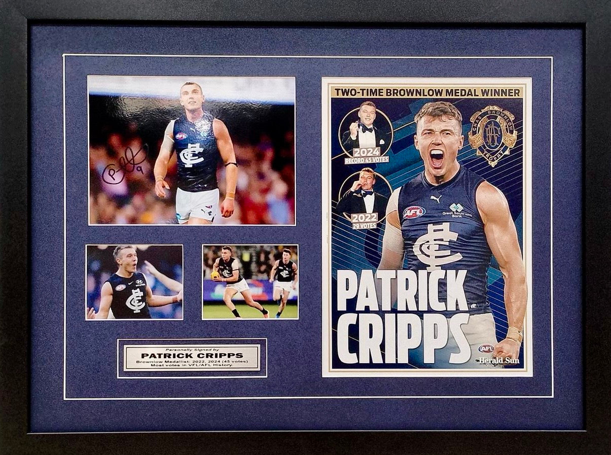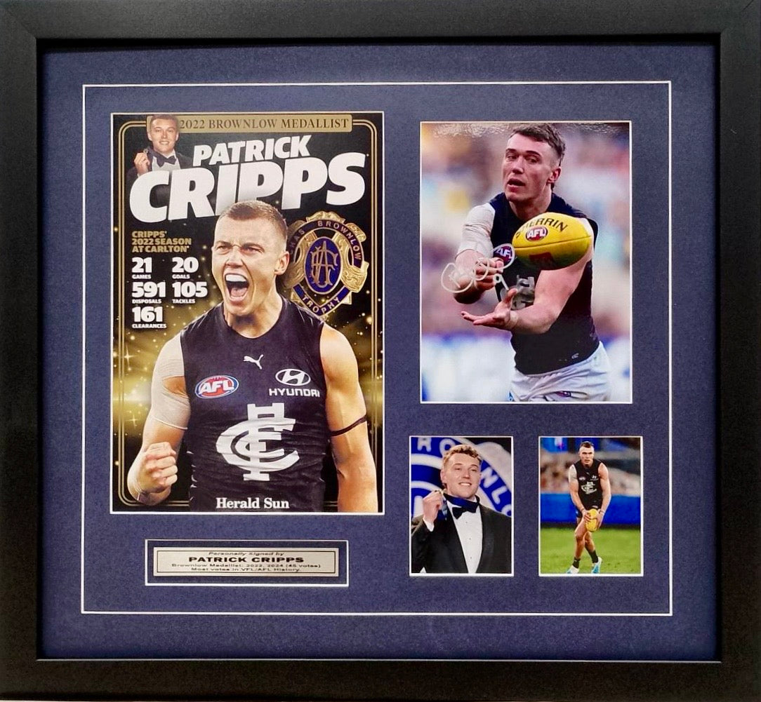 PATRICK CRIPPS “2022 & 2024 Brownlow Medallist” Signed 6”x8” Photo Collage Display, Framed.