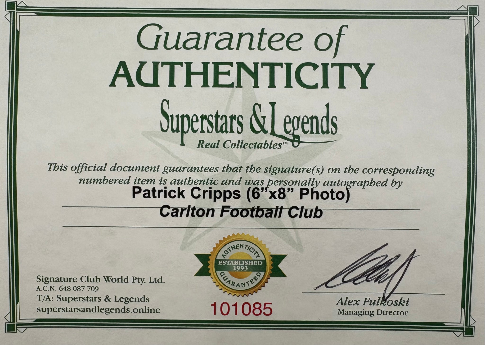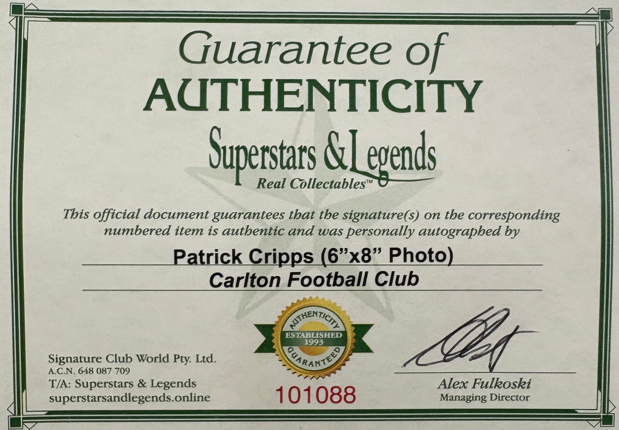 Comes with Superstars & Legends certificate of authenticity.