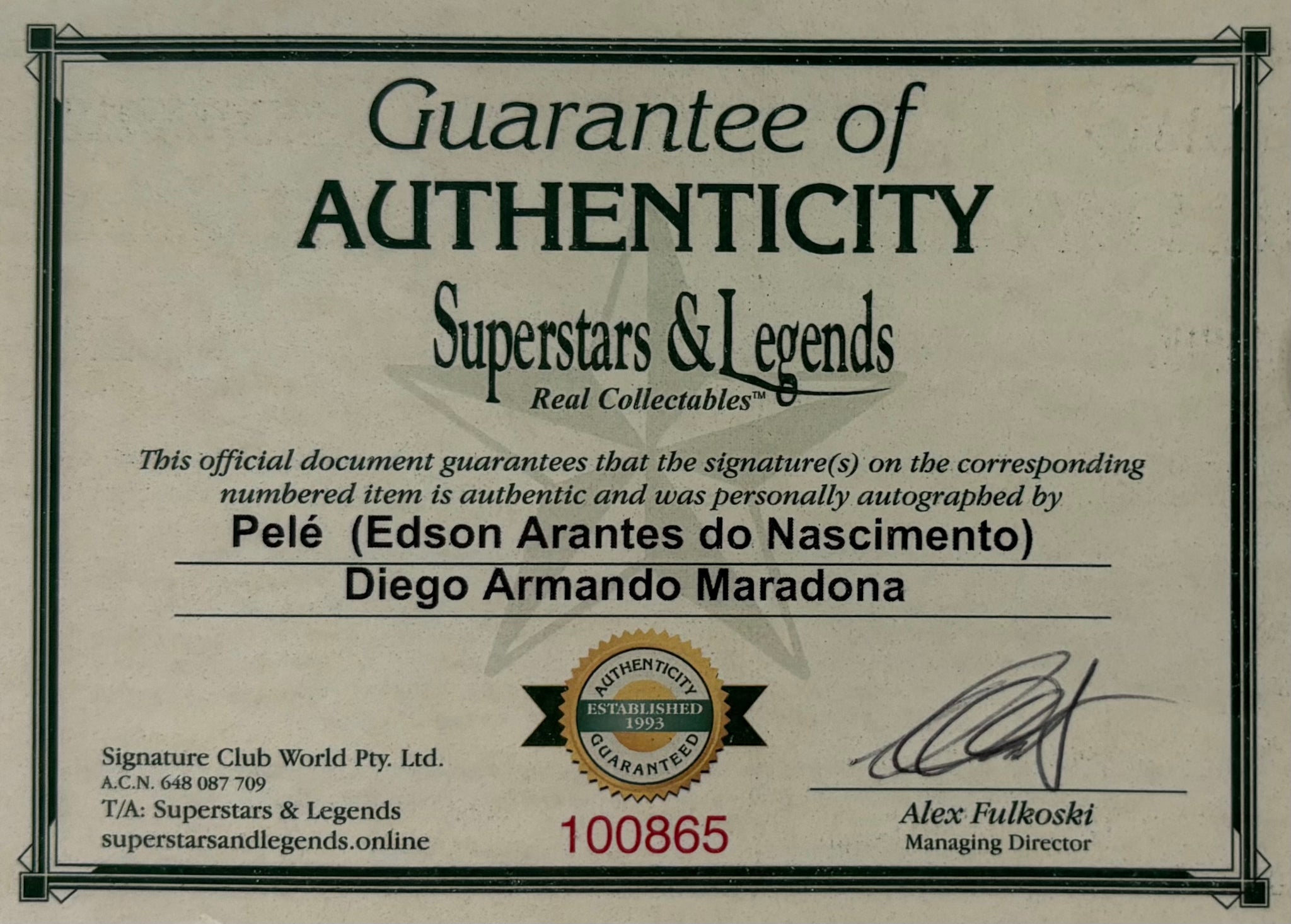 Comes with Superstars & Legends certificate of authenticity.