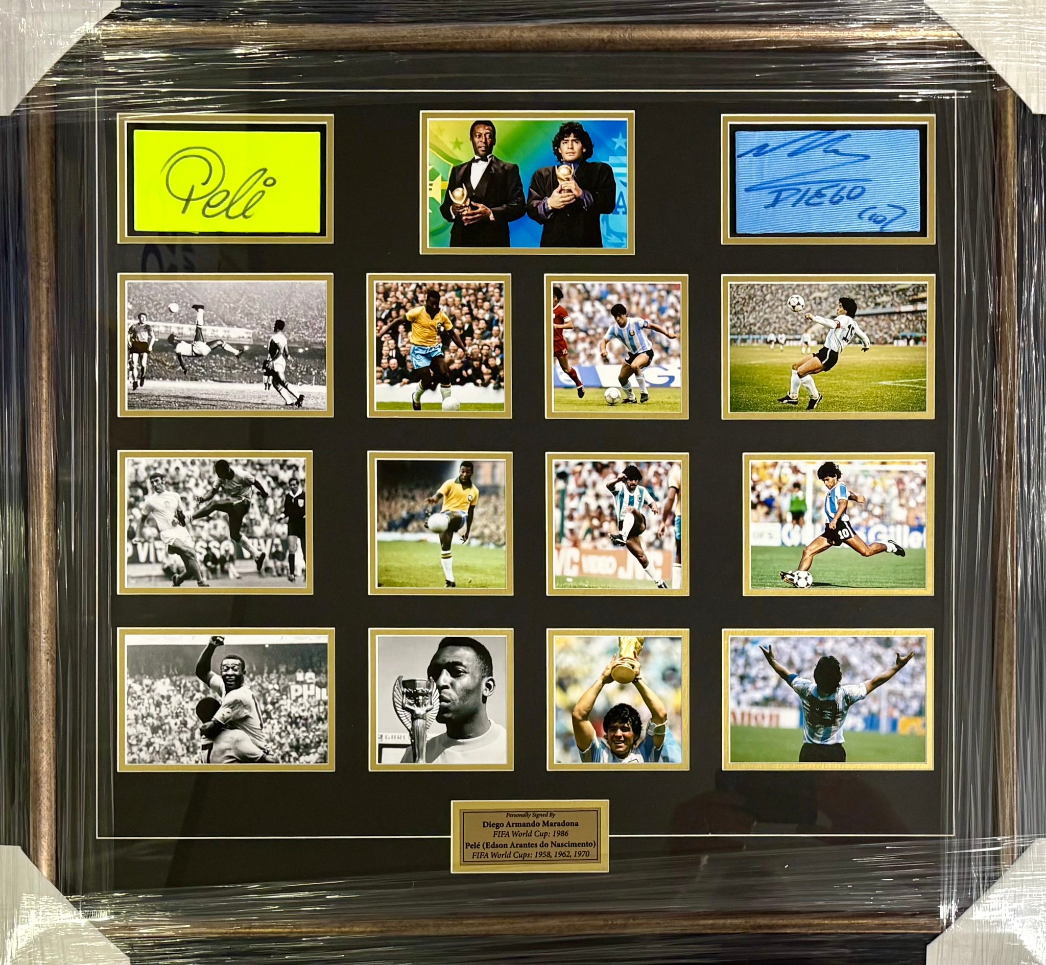 PELE “Brazil” & DIEGO MARADONA “Argentina” Signed Photo Collage Display, Framed.