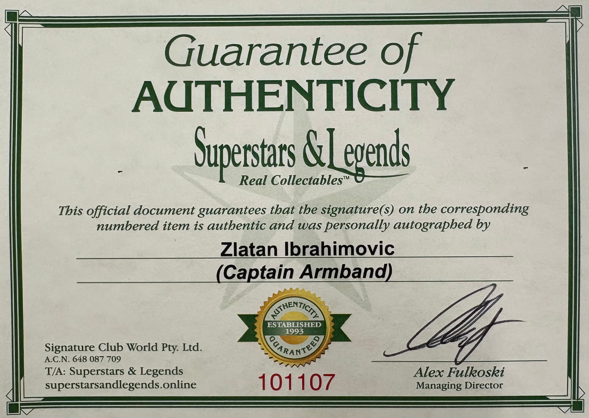 Zlatan Ibrahimović Signed Captain Armband & Photo Collage Display, Framed.