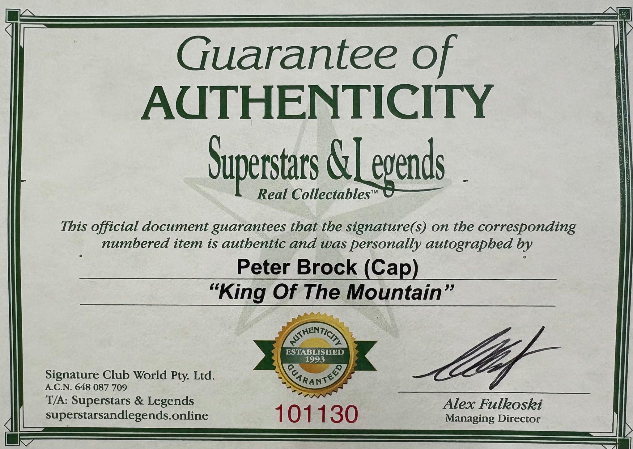 Comes with Superstars & Legends certificate of authenticity.