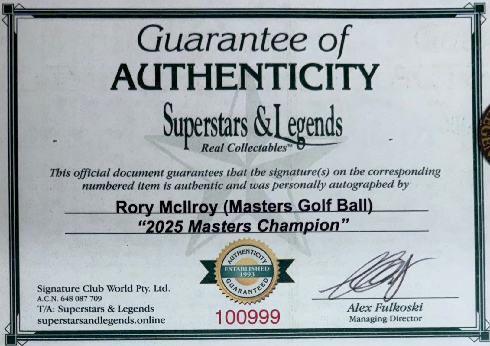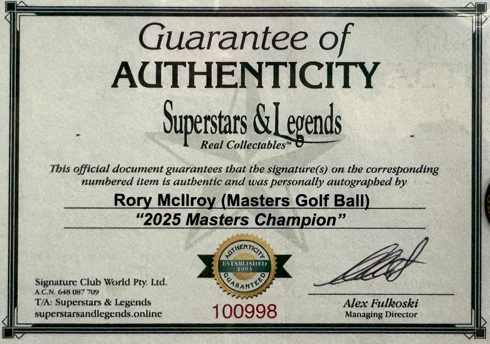 Comes with Superstars & Legends certificate of authenticity.